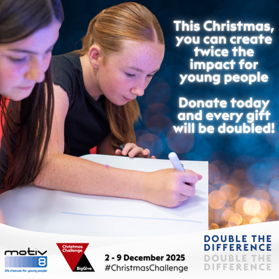 From the 2nd until 9th December, every penny, pound and pledge made to Motiv8 through the Big Give Christmas Challenge, will be doubled.