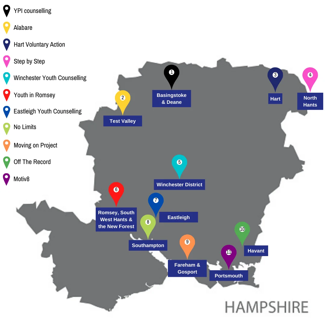 Motiv8 is proud to be part of the Hampshire Youth Access (HYA) initiative. HYA is a partnership of 11 leading agencies providing counselling, mental health and emotional wellbeing advice and support to children and young people aged 5 – 17 (or 24 for care leavers and SEND) across Hampshire.